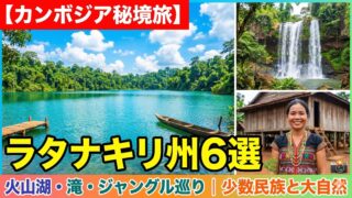 【カンボジア秘境旅】ラタナキリ州6選|火山湖・滝・ジャングル巡り:少数民族と大自然導入文カンボジア北東部に位置する秘境エリア「ラタナキリ州」。火山湖・滝・ジャングル・少数民族文化がぎゅっと詰まったこの地域は、まだ観光地化されすぎていない本物...