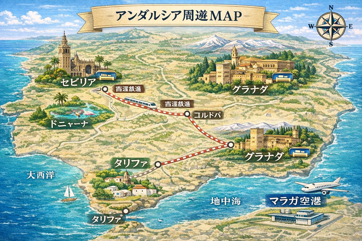 📍 アンダルシア地方・周遊ルート全体MAP