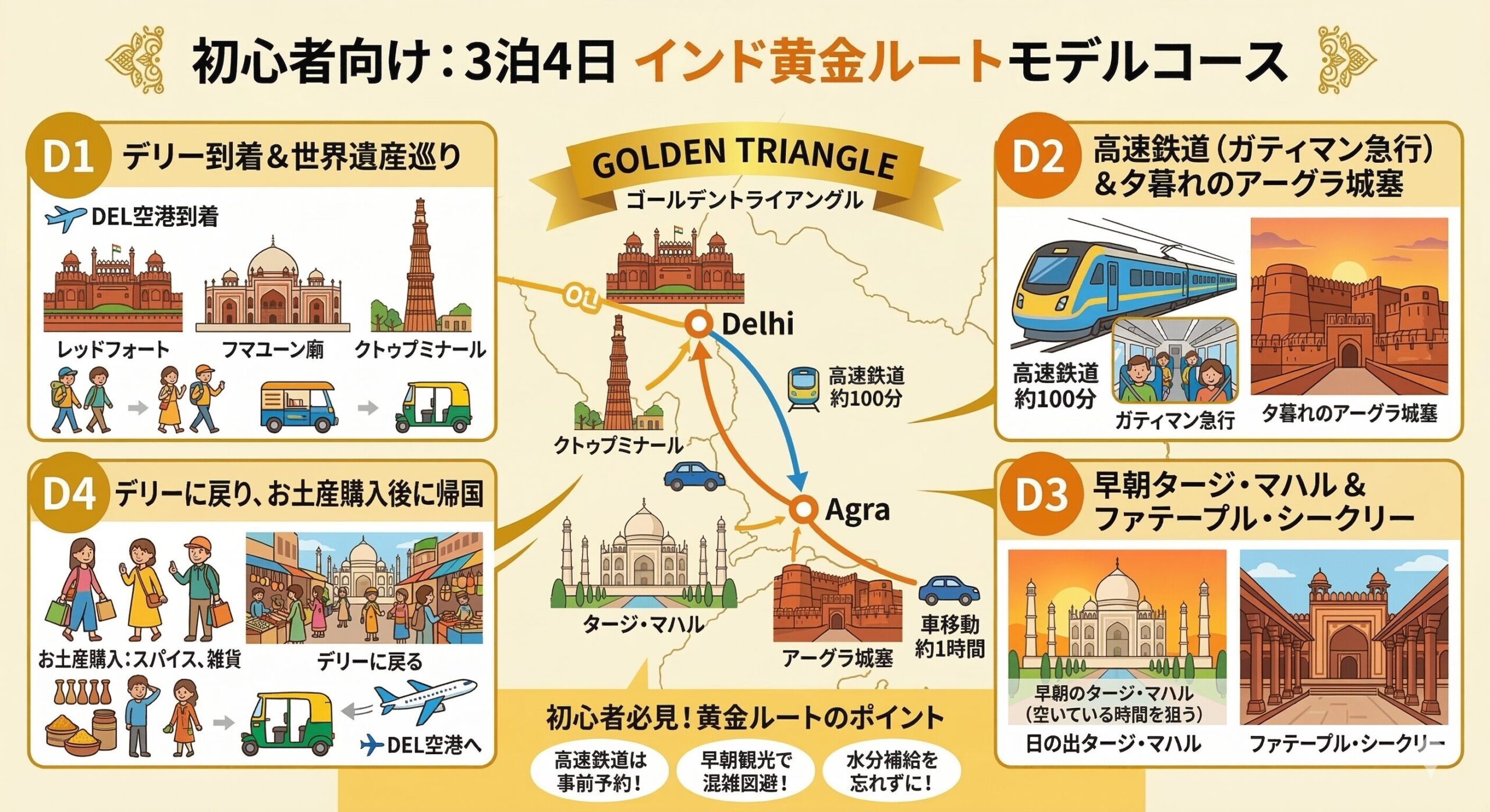 👉 国内移動は鉄道とLCC(IndiGo、SpiceJetなど)が主流。