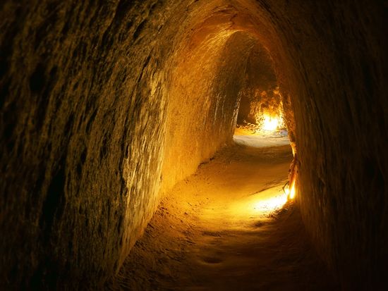 戦時中に使われた地下トンネル網の一部が公開され、観光客も潜入体験できます。