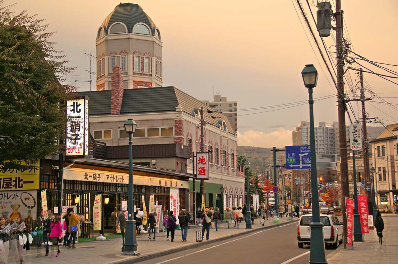 北一硝子、小樽オルゴール堂、ルタオ本店などが集まる観光ストリート。