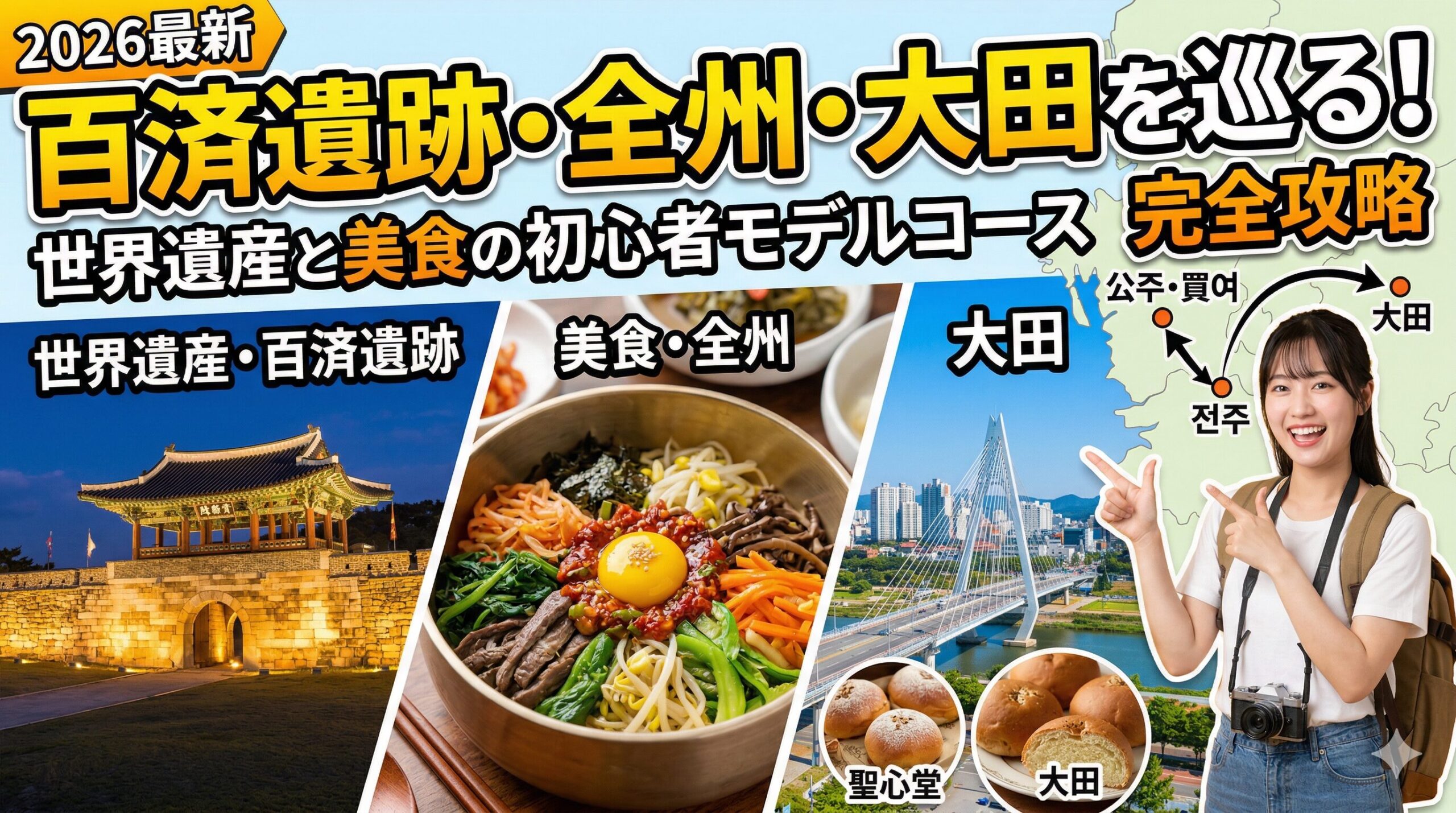 Discover the heart of South Korea in 2026 with this strategic 4-day guide covering the Baekje World Heritage sites in Gongju/Buyeo, the traditional Jeonju Hanok Village, and the futuristic science city of Daejeon. Perfect for beginners, this model course ensures high-value travel with efficient KTX routes and stunning historical landscapes.