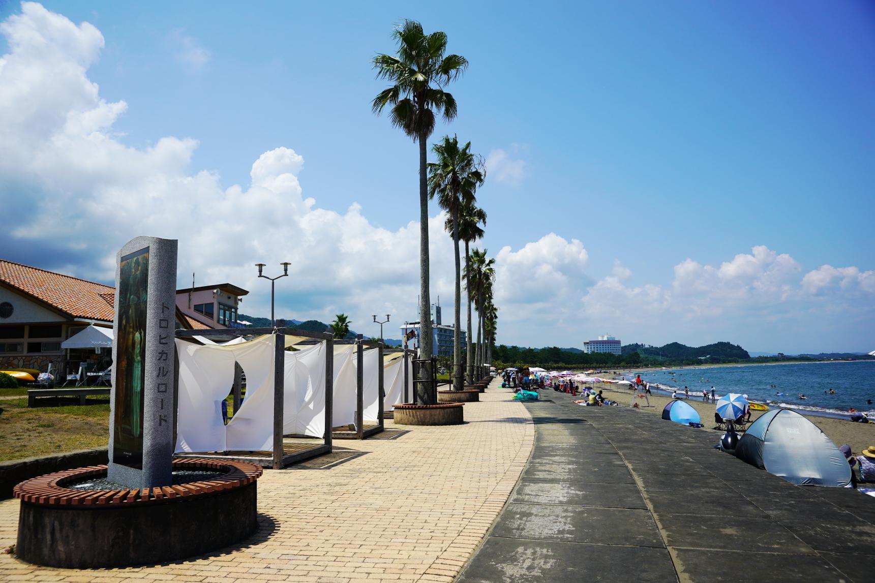 快水浴場百選にも選ばれた青島海水浴場は、夏季にはマリンスポーツや海水浴で賑わいます。