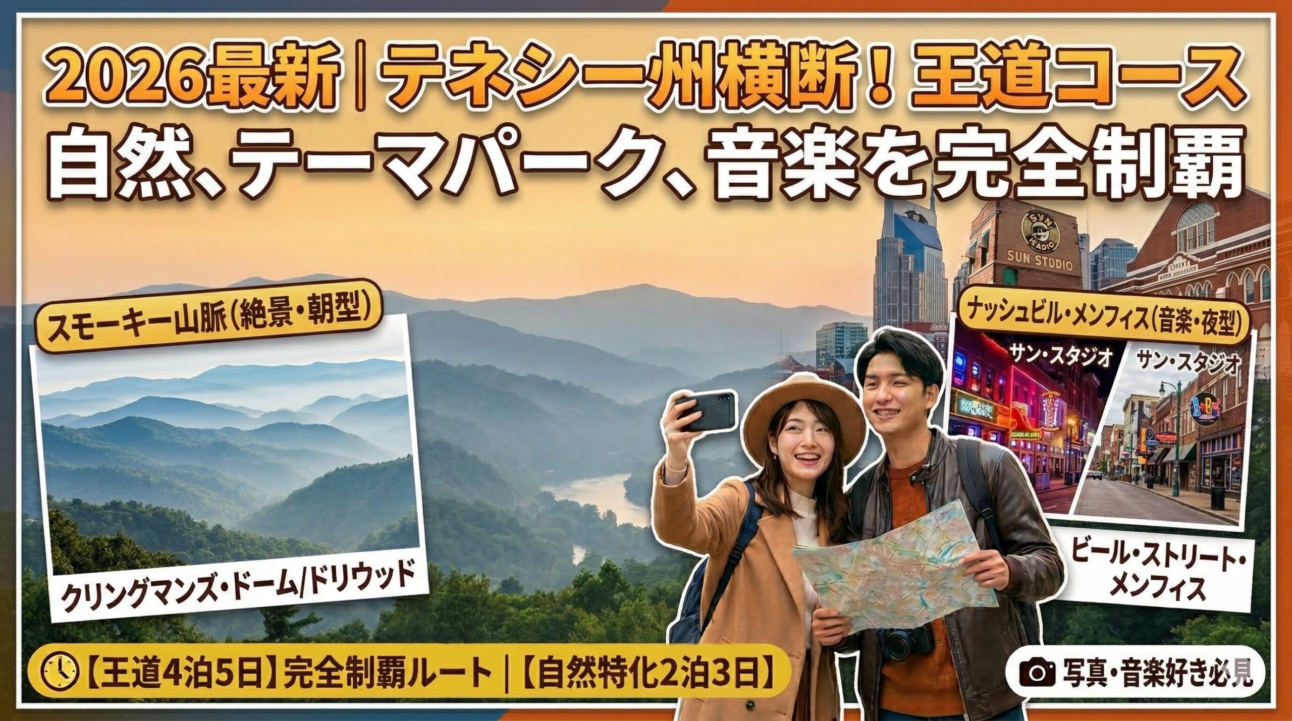 A1. 主要スポット(スモーキー山脈・ナッシュビル・メンフィス)を効率よく回るなら