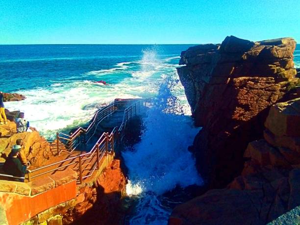 大西洋の波が狭い岩間に打ち寄せ、「雷鳴」のような轟音と