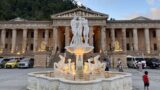 滝の水しぶきを浴びながらクルーズ甲板での撮影。