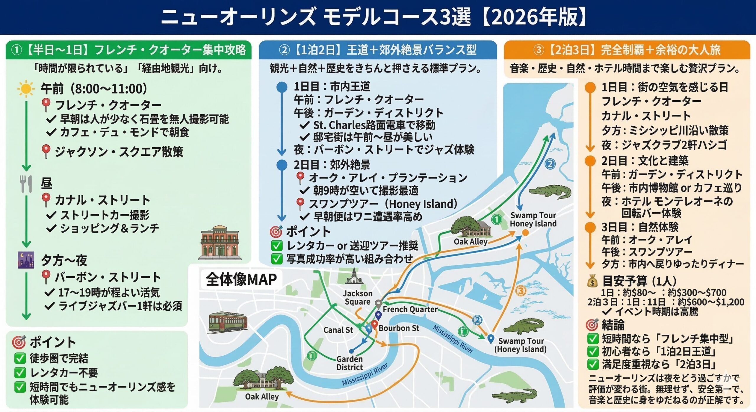 🎷 ニューオーリンズ モデルコース3選【2026年版】