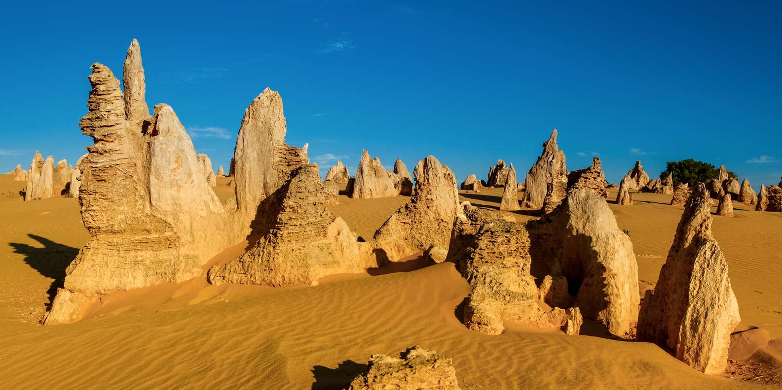 ナンバン国立公園内に広がるピナクルズ砂漠は、数千本の石灰岩が立ち並ぶ幻想的な世界。