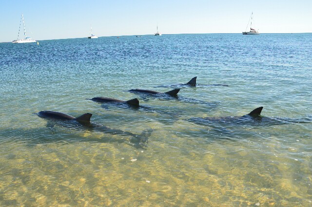 ユネスコ世界遺産「シャーク・ベイ」に属するビーチで、野生のイルカが毎朝餌付けに