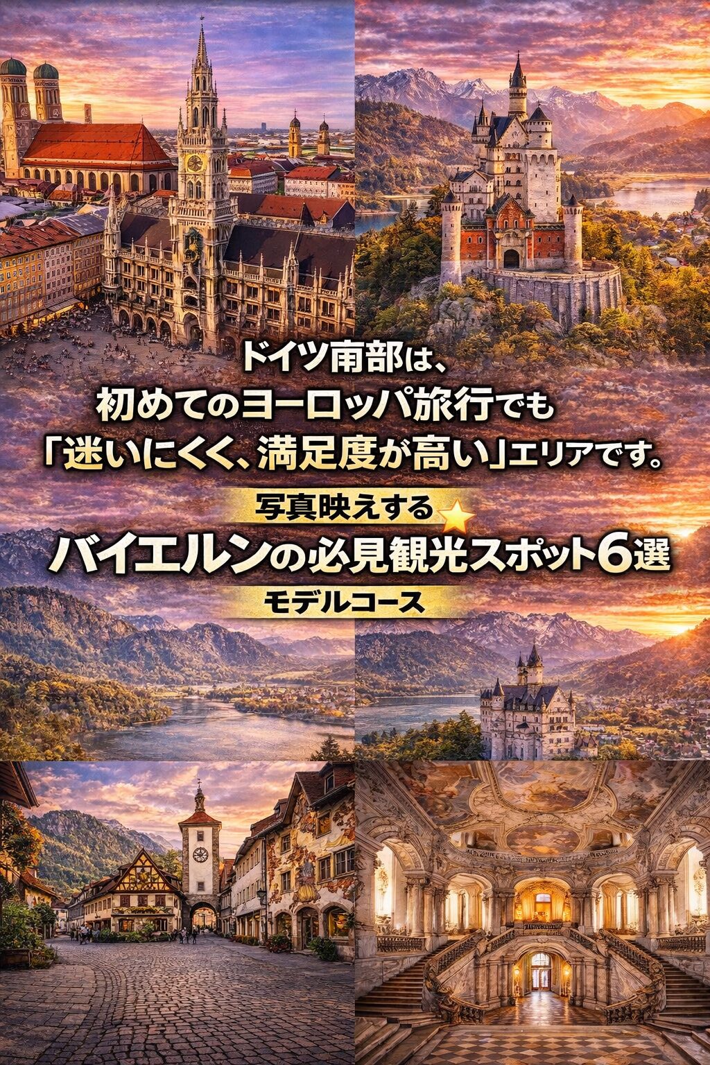 この南ドイツ5泊6日モデルコースは、初めてのドイツ旅行でも迷わず回れるよう、