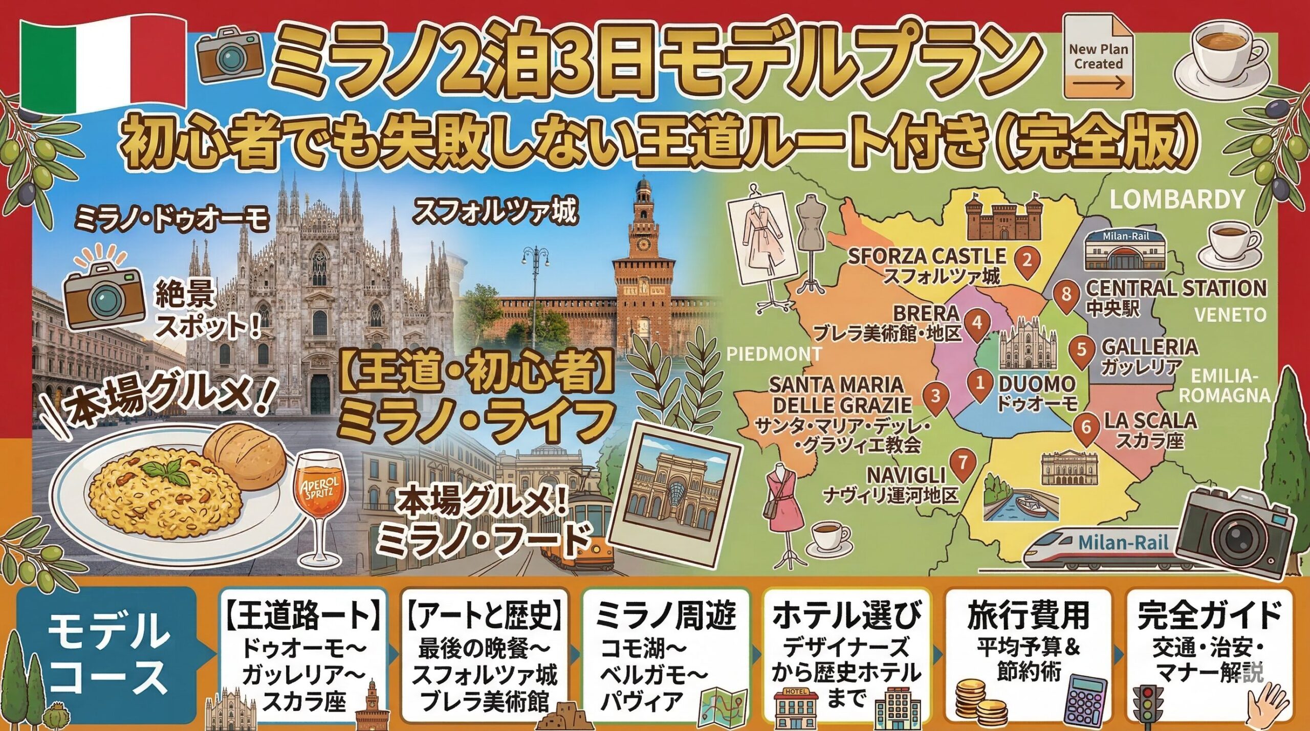 状況に応じて微調整しながら、自分だけのミラノ旅行に仕上げてください。