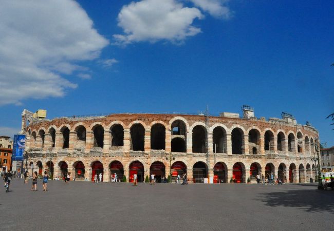 紀元1世紀に建設されたローマ時代の円形闘技場で、現在もオペラ公演が行われている