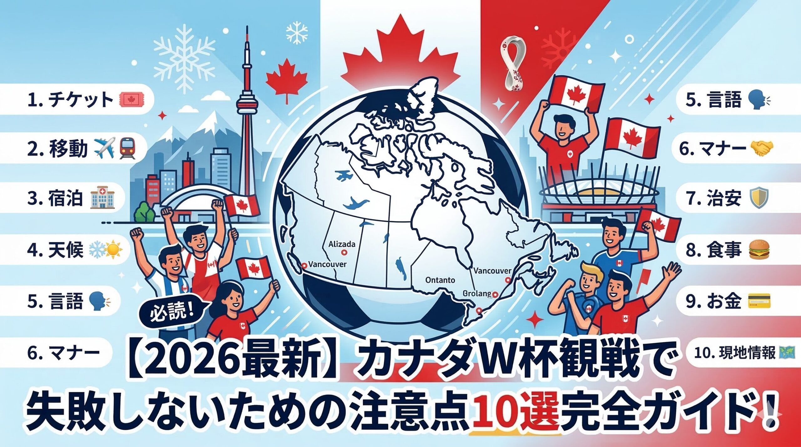 今回は、初心者が2026年カナダW杯で絶対に失敗しないための注意点10選を徹底解説します。この記事を読めば、あなたは現地で迷うことなく、熱狂の瞬間を120%楽しめるはずです!