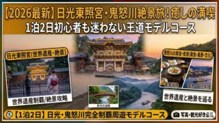 【2026最新】日光東照宮・鬼怒川温泉1泊2日モデルコース!初心者も迷わない絶景旅導入文栃木県日光市に位置する「鬼怒川温泉」は、渓谷の自然美と伝統の湯が調和する名湯。そこから30分の距離に、世界遺産「日光の社寺」を擁する日本屈指の歴史エリア...