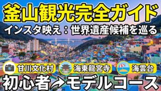 釜山観光完全ガイド|インスタ映え:世界遺産を巡る初心者モデルコース導入文韓国第2の都市・釜山は、カラフルな街並みとモダンなビーチリゾートが共存する魅力あふれる海の都市です。甘川文化村のパステルタウン、海雲台ブルーラインパークの絶景、国際市場...